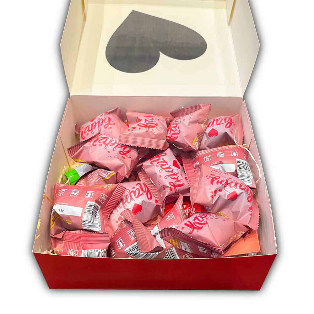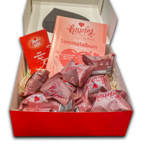 Diese Happy in love! 20er-Box ist eine ganz besondere Liebesbotschaft. Ein Dankeschön am Mutter- oder Valentinstag, ein Freundschaftsbeweis oder eine Belohnung ganz für dich allein. Die exklusive Box enthält neben 20 einzeln verpackten Schokoglückskeksen in bewährter Happy-Qualität ein limitiertes Sammelalbum inklusive Klebestift. Ein romantisches Jahresheft rundet die Box ab.
