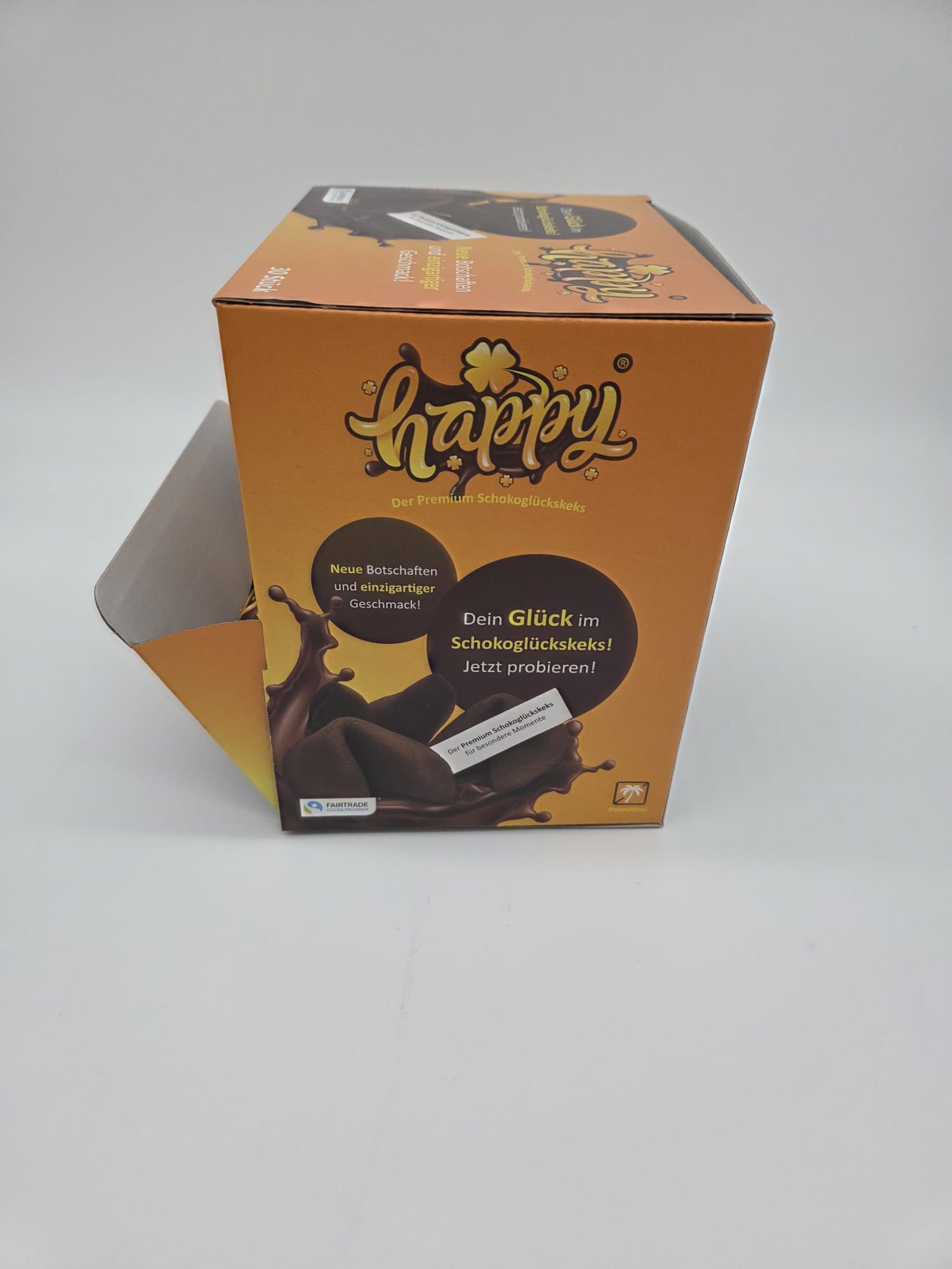 Inhalt: 1 Box enthält 30 einzeln verpackte Happy Schokoglückskekse
