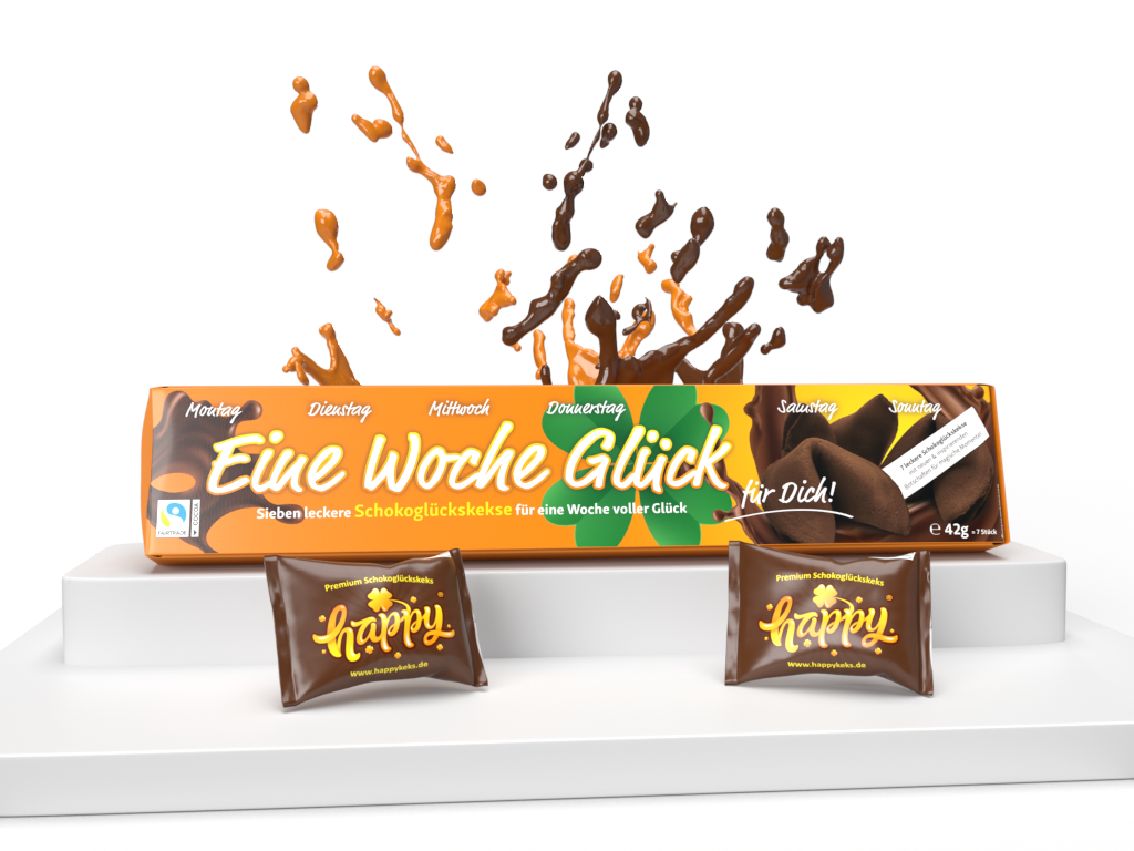 1 Box enthält 7 einzeln verpackte Happy-Schokoglückskekse